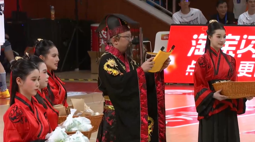 中场表演 富阳“东吴霸王”发放土特产