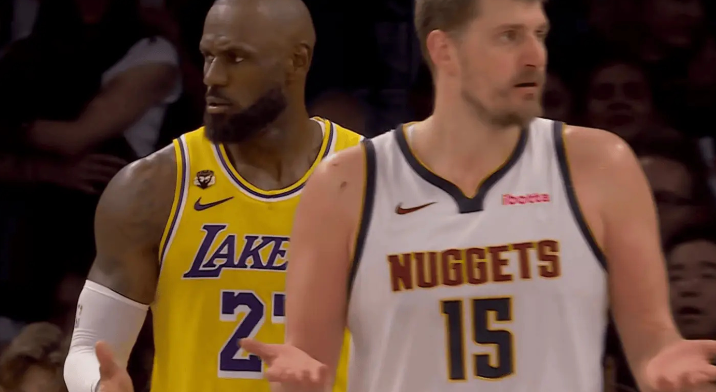 有趣的是,在比赛中,詹姆斯和约基奇都对裁判的吹罚不满,他们一起摊手,上演了经典的“四手联摊”。