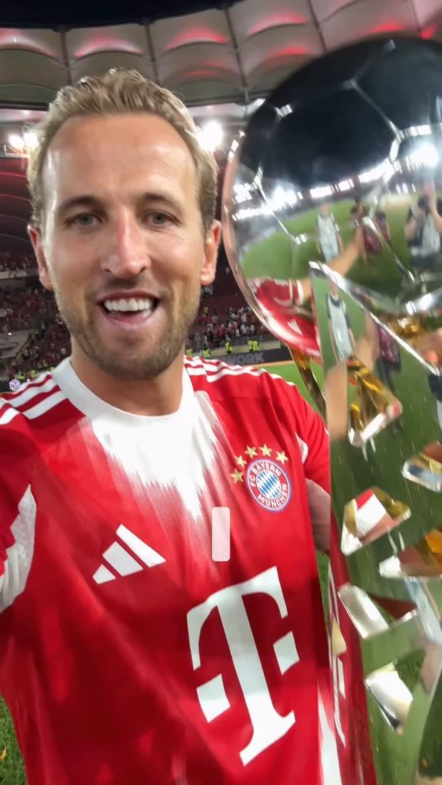 在比赛结束后,这位英格兰射手在个人社交媒体上连发与奖杯的合照,每张都笑容灿烂,庆祝个人职业生涯首次赢得德国超级杯。